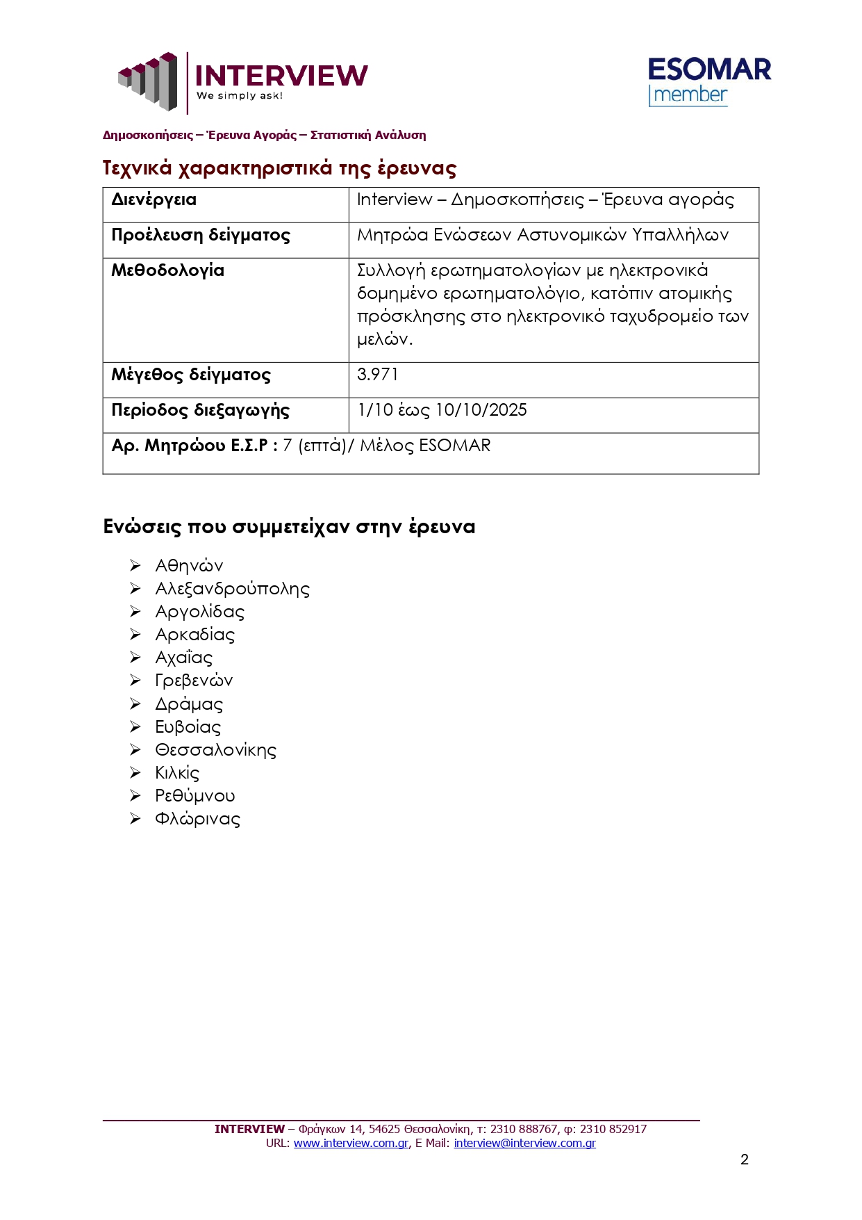 Σας παρουσιάζουμε την έρευνα στην οποία έλαβαν μέρος 3971 αστυνομικοί από τις Ενώσεις Αθηνών, Αλεξανδρούπολης, Αργολίδας, Αρκαδίας, Αχαΐας, Γρεβενών, Δράμας, Ευβοίας, Θεσσαλονίκης, Κιλκίς, Ρεθύμνου και Φλώρινας