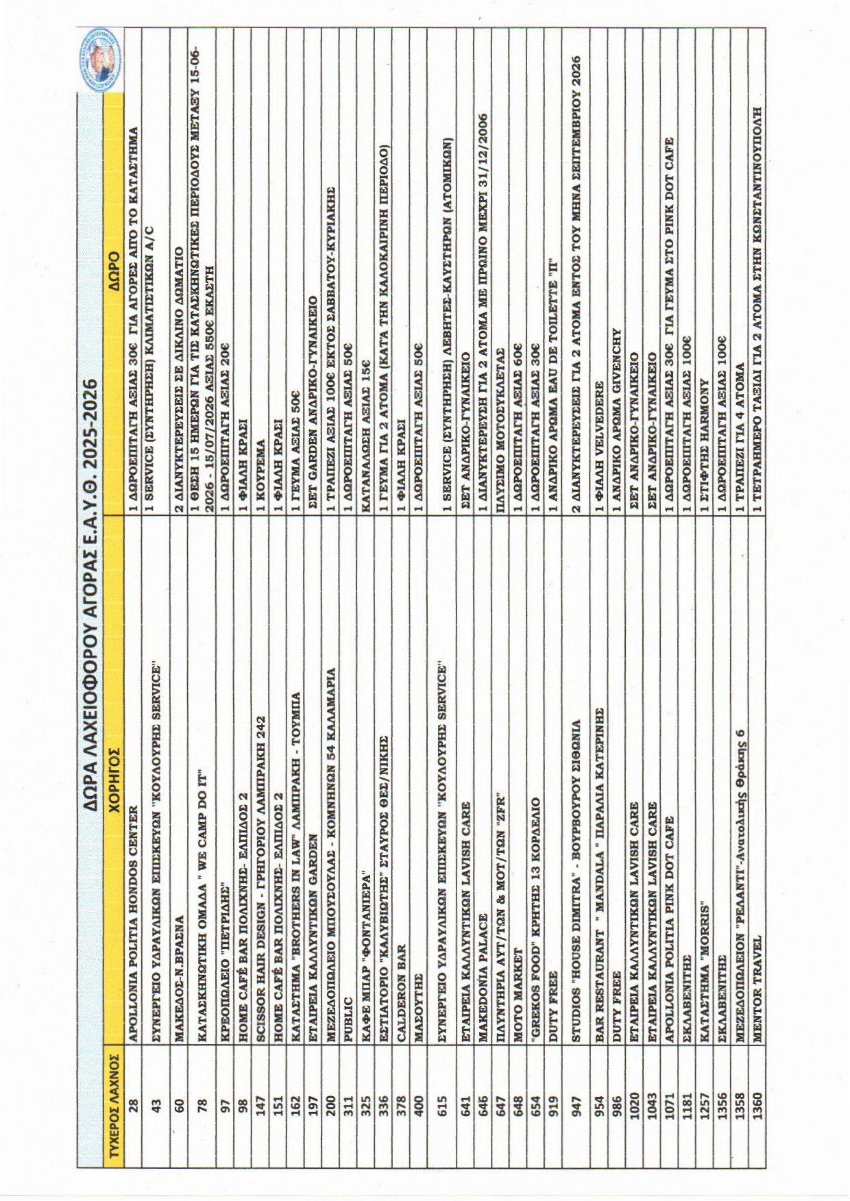 Ευχαριστούμε θερμά όσους συνείσφεραν στη διοργάνωση και την επιτυχή έκβαση της λαχειοφόρου αγοράς, είτε ως δωροθέτες είτε προμηθευόμενοι λαχνούς.