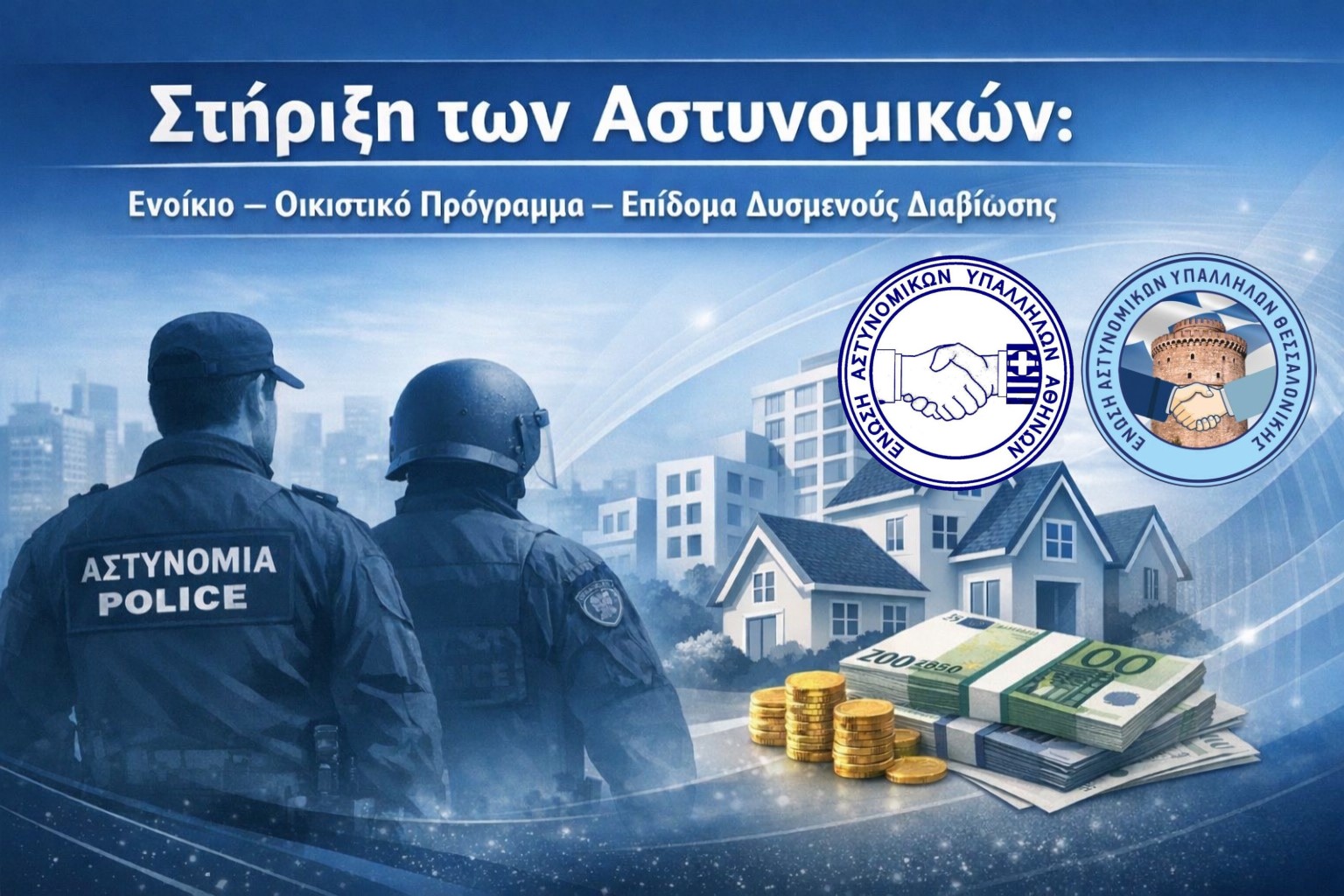 Κοινό Έγγραφο των Ε.ΑΣ.Υ.Α. – Ε.Α.Υ.Θ Προς: 1) Τον Υπουργό Προστασίας του Πολίτη, κ. ΧΡΥΣΟΧΟΪΔΗ Μιχάλη, 2) Τον Υπουργό Οικονομικών, κ. ΠΙΕΡΡΑΚΑΚΗ Κυριάκο, με Κοιν.: 1) Αρχηγό της Ελληνικής Αστυνομίας, Αντιστράτηγο κ. ΜΑΛΛΙΟ Δημήτριο, 2) Πολιτικά Κόμματα, 3) Πρωτοβάθμιες Οργανώσεις, 4) Αστυνομικές Υπηρεσίες και Θέμα: «Αίτημα συμπερίληψης των αστυνομικών στις ρυθμίσεις επιστροφής ενοικίου – επαναφορά προτάσεων για οικιστικό πρόγραμμα και επίδομα δυσμενούς διαβίωσης για την Αττική».